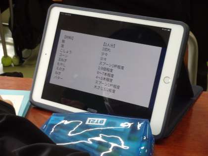 1年生の家庭科の授業です。次回予定している調理実習のレシピをタブレットを使って学びました。ちなみにメニューは鮭のちゃんちゃん焼きでした。