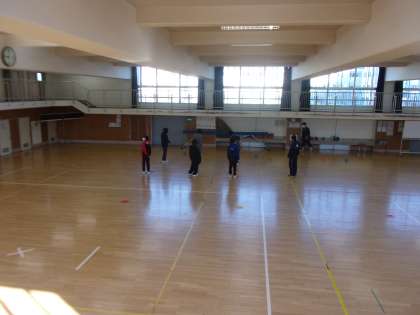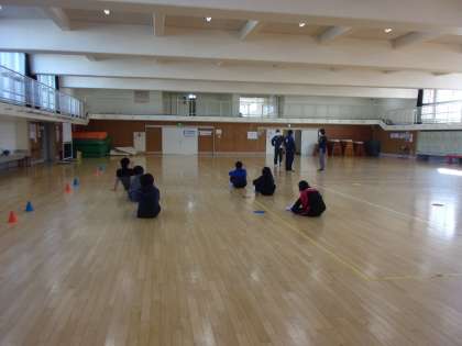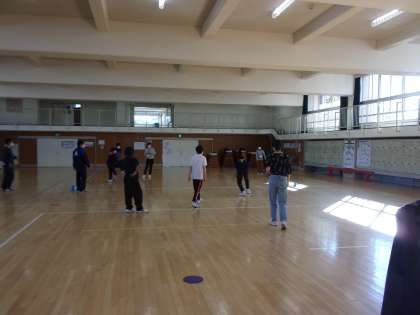 今日の1時間目は、ほっとルームを利用している生徒を中心に格技室で体育的活動を行いました。準備運動のあと「ネコとネズミ」「ボールおくり」「ドッジボール」を行いました。学習サポーターの人達も加わり楽しく行うことができました。