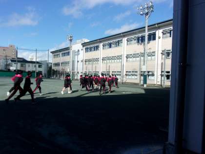 明け方まで、嵐のような風雨に見舞われましたが、朝には上がり2時間目には校庭のほとんどが乾きました。体育の授業も予定通り行いました。