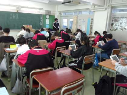 本日は1年AB組でGTECを実施いたしました。これで1年生全クラスのGTECの受験が終了しました。GTECは英語の読む、聴く、話す、書くの4つの技能を測るスコア型の試験です。今回の結果がでたらぜひ今後の学習に活かしてほしいですね。