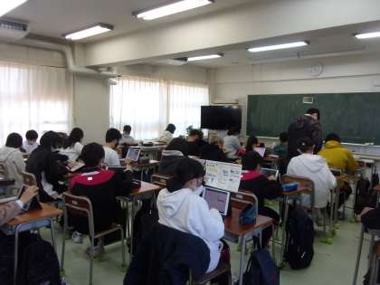 1年生の学活では、タブレットを使って自分が興味を持っている職業について調べました。