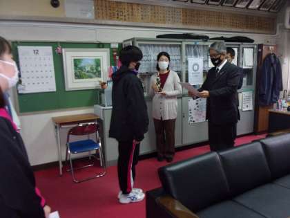 卓球部の個人戦では2位から5位までを独占しました。12月26日からの都大会に出場します。