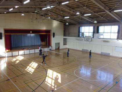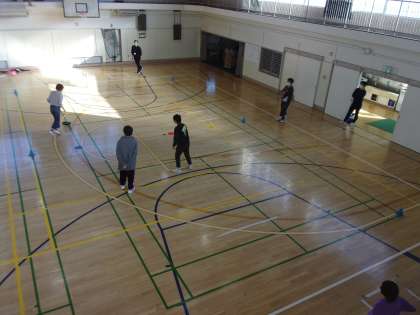 ほっとルームを利用している生徒を対象とした体育的活動を行いました。きょうは準備運動のあとドロケイを行い、そのあとドッヂビーとバドミントンを行うグループに分かれて汗を流しました、あちらこちらから歓声が聞こえてきました。