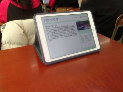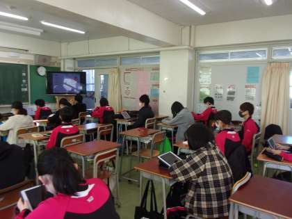 1年生の朝学習の様子です。A組では職業調べの個人発表を行いました。ここで調べた内容をロイロノートを活用してタブレットに配信し説明していきました。どの生徒も大変よく調べていました。