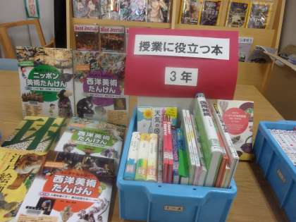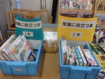 図書室内に教科書に出てきた本や直接授業で扱った本、調べ学習に直接役立つ本のコーナーを新設しました。是非利用してください。
