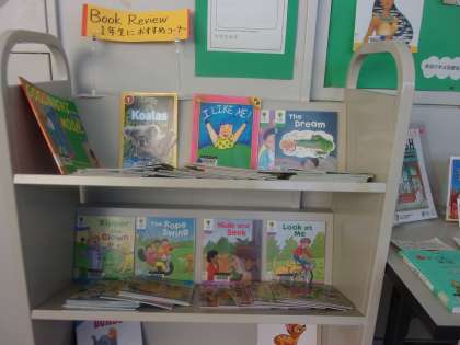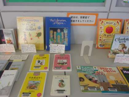 このコーナーには1年生向けの英語の本のコーナーやALTの先生のおすすめの本も紹介してあります。