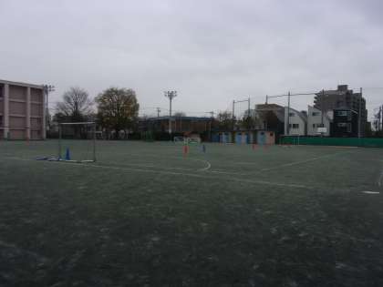 校庭でハンドボールを行おうとしていましたが、急に雨(みぞれ?)が降ってきました。