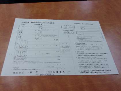 3年生は今日の1時間目に願書記入上の注意を行い、そのあと都立高校の願書を用いて願書の下書き(練習)を行いました。都立高校の願書などの出願書類は中学校で用意いたしますが、国立や私立高校、サポート校などの出願書類は各自でご用意ください。もういちど出願日、受験日、必要書類などをご確認をお願いいたします。