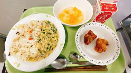 今年度初のリクエスト給食は、2年生からのものです。唐揚げとフルーツポンチが多くの票を集めていました。