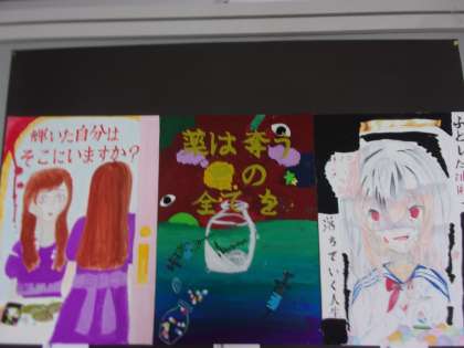 薬物乱用防止のポスターを北校舎2階の廊下に掲示しました。力作ぞろいです。ぜひご覧ください。