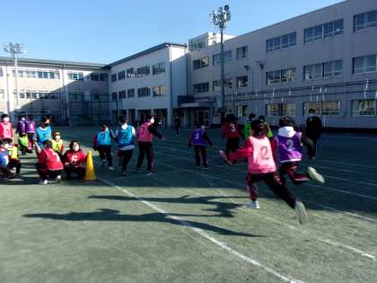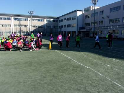 1年生の1時間目の後半と6時間目にお楽しみ会です。1時間目は全員リレーを行いました。青空の中歓声が響きました。運動会を思い出しますね。先生方も走りました。