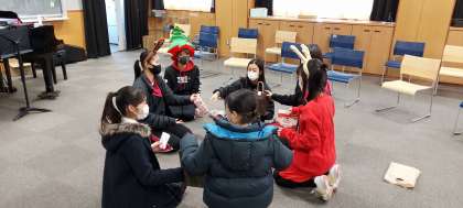 昼休みにプレゼント交換会を行いました。一生懸命に選んだプレゼント、みんな嬉しそう!