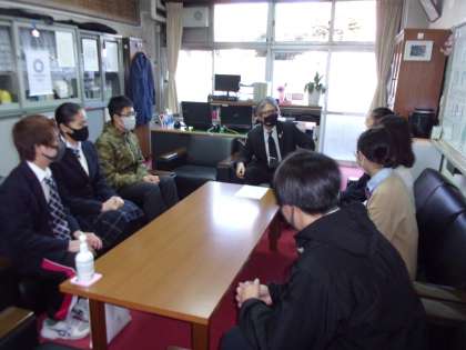 昼休みに校長先生と生徒会執行部の生徒が校長室で新年を迎えての懇談を行いました。役員ひとりひとりから今年の抱負が述べられました。