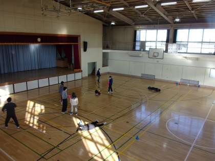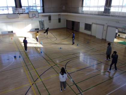 今日の1時間目はほっとるーむ利用生徒を中心に体育的な活動を行いました。準備運動の後は鬼ごっこ。休憩時間には床に寝転ぶほどコートいっぱいに走り回りました。後半はドッジボールを行いました。