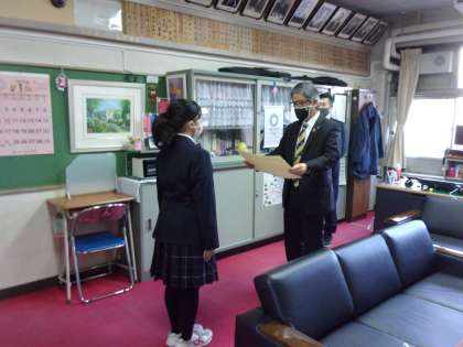 3年生女子が税の作文で全国納税貯蓄組合総連合会会長賞を受賞しました。すごいですね!表彰の様子は後日各クラスに配信いたします。