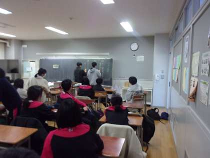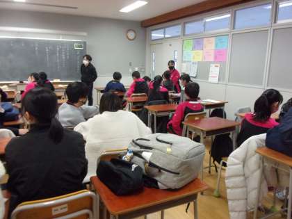 体育委員会(左)は昼休みのボールの貸し出し状況について、美化委員会(右)は12月の反省と日々の清掃状況について話し合いました。