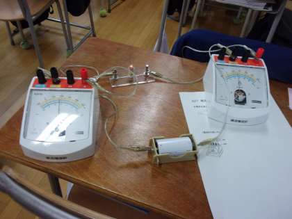2年生の理科の授業です。今日は教室で班ごとに電流計の使い方について学習しました。