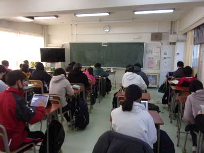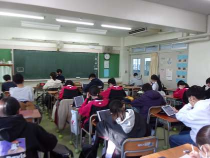 今日から通常授業への出席とTeamsを利用したオンライン学習との選択授業が始まりました。1年生の朝学習の様子です。キュビナを使って各自の課題に取り組みました。