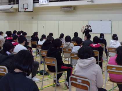 1年生は本日バースコーディネーターの先生をゲストティチャーに招き体育館で誕生学の授業を受けました。母親の胎内から出産までの胎児の成長過程、母体の変化などについての授業を通し、改めて生命の尊さを学ぶことが出来ました。