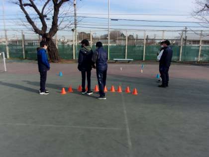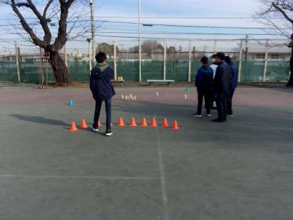 本日のほっとルーム利用生徒を中心とした体育的活動は、テニスコートでモルックを行いました。モルックはフィンランド発祥のスポーツで、モルックと呼ばれる木の棒を投げてスキットルという木のピンを倒し、倒したピンの合計得点が50点ぴったりになると勝つといったゲームです。やってみると意外と難しい!でも楽しく行うことができました。