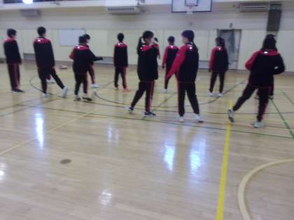 2年生の体育の授業ではダンスが始まりました。学年のダンスリーダーが振り付けを考え、各クラスで選ばれたインストラクターが先に振り付けを覚え、授業時にリーダーとして教えます。また、インストラクターによるお手本となるダンスは、リモート学習希望者に対し、ロイロノートで配信しています。