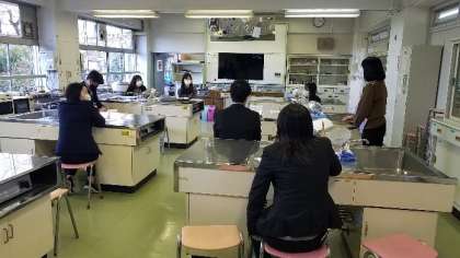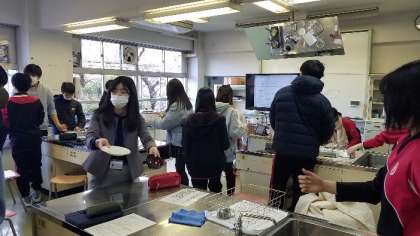 調理実習ではありません。鰹節、昆布など和風だしのにおいを確かめる授業です。合わせだしもいい香りです。新しいコロナ禍でのチャレンジです。
