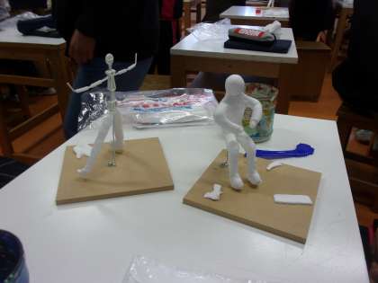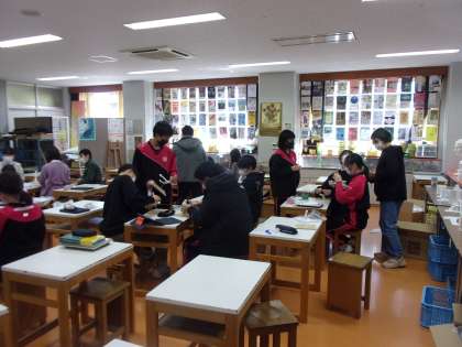 1年生の美術の授業です。紙粘土を使っての工作で、テーマは「何かをやっている人」です。さて、何をしているところなのかそれぞれ工夫を凝らしていました。