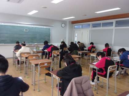 6時間目は英語の積み重ねテストを行いました。この後の1,2年積み重ねテストは、3月2日(水)の5時間目に音楽、美術、技術、3月3日(木)の6時間目に家庭科と保健体育を実施いたします。