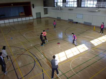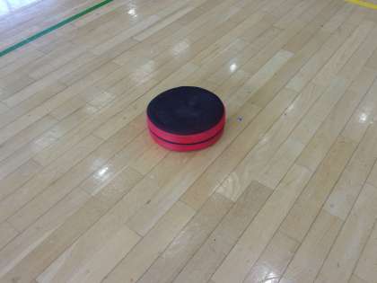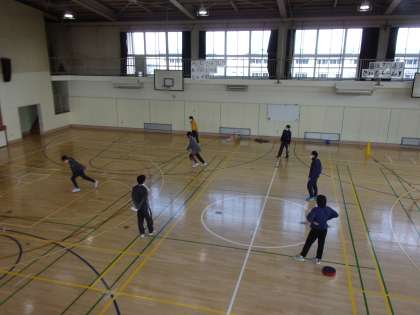 きょうの1時間目は体育館で主にほっとルームを利用している生徒を中心に体育的活動を行いました。きょうは、フットホッケーを行いました。布製の専用ディスクをフットサルの要領で足を使って相手ゴールを狙います。このディスクが大変よく滑るのでスピーディーな展開となり、かなりの運動量となりました。ゲーム後はみんな息が上がっていましたが、チーム内でコミュニケーションをとり楽しく進めることができました。