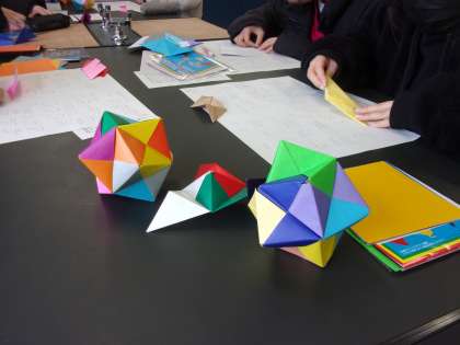 3年生はクラスごとに折り紙教室を実施いたしました。何枚かの折り紙を組み合わせてつくる作品に挑戦しました。なかなかの出来栄えです。なお、折り紙教室には旧PTAのかたや地域の方に講師としいらしていただきました。ありがとうございます。