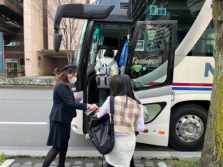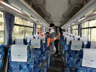 バスに乗り込みます。