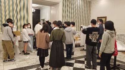 荷物を送るビニールを配っています。あと一日になりました。