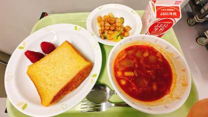 今年度最後の図書コラボ給食は、『パンとスープとネコ日和』(著:群ようこ)に登場する豆のスープを作りました。母親の遺した食堂を改装してカフェをオープンさせた主人公のお話です。食材選びや調理の手間を惜しまない主人公の気持ちが表されるようなスープには、ひよこ豆、白いんげん豆、レンズ豆といったたくさんの豆を使い具だくさんに仕上げました。野菜も食べやすかったのか、しっかり食べているクラスが多かったです。
