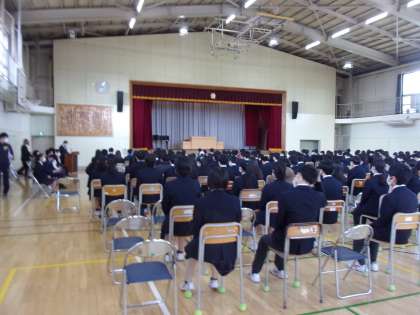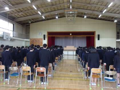 昨日修学旅行を終えたばかりの3年生ですが、今日は1時間目から卒業式の予行練習をおこないました。当日の式次第に沿っての練習でしたが、疲れも見せず整然と行うことができました。