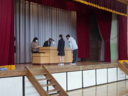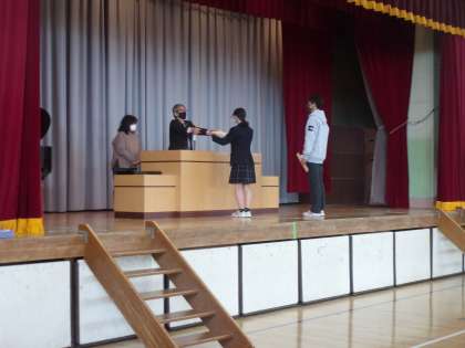 続いて東京都産業教育振興会より「人格を磨き学業の向上に努め他の模範として学校長から推薦を受けた」(表彰状より抜粋)男女各1名が表彰されました。