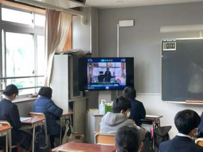令和3年度の修了式を動画配信の方法で行いました。最初は校長先生のお話です。