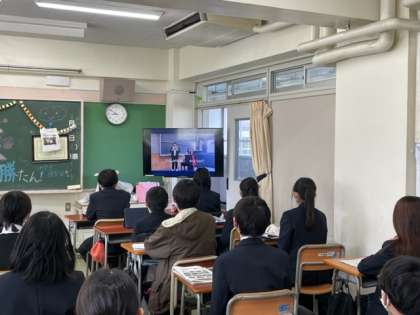 生徒支援部の主任の先生からのお話です。最後に校歌を配信しました。