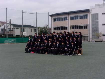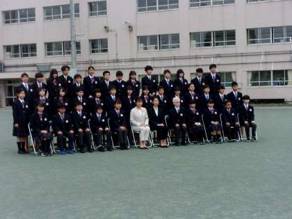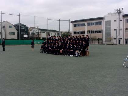 式後校庭クラスごとに記念写真を撮影しました。A、B、C組です。