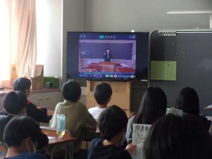 後半は事前に録画した委員会紹介、部活動紹介を動画で各クラスに配信いたしました。