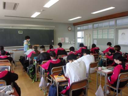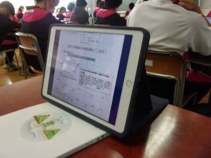 2年生の数学の授業です。こちらのオリエンテーションではタブレットを使用して行いました。