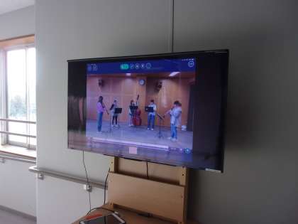 吹奏楽部ではアンサンブル演奏の様子を画像で紹介するなどの工夫をしていました。