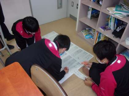 放課後は担任の先生と一緒に一学期の個人目標を模造紙に貼って掲示しました。