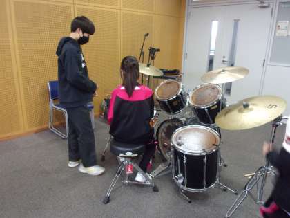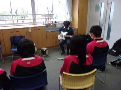 軽音部の仮入部にはたくさんの1年生が来ました。希望する楽器ごとに分かれて演奏体験をしました。