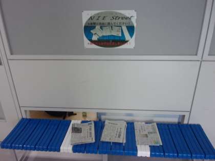 本校はNIE(Newspaper in Education)の実践推進校です。普段の学校生活の中で新聞を活用していくために、東校舎の2,3階と北校舎の3階の廊下に「NIE STREET」を設けました。ぜひ活用してほしいですね。