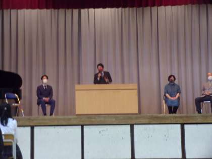 技術の先生です。生徒代表の言葉と花束贈呈はコンピューター部が行いました。