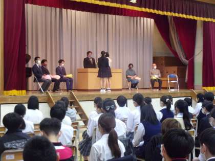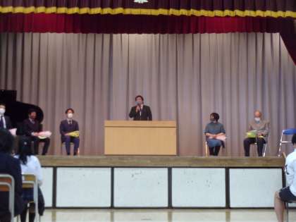 元1年の技術の先生です。生徒代表の言葉と花束贈呈は2学年委員の生徒が行いました。