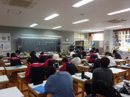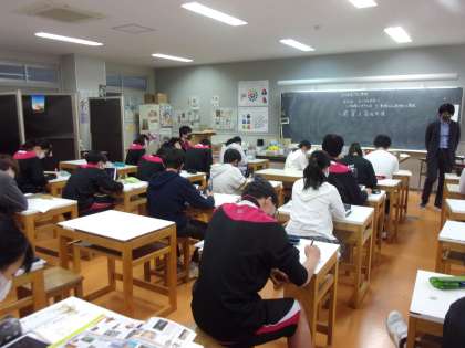3年生の美術の授業です。今日はメソポタミア文明の美術品について学習した後、想像上の動物のイメージ画(下絵)を描きました。