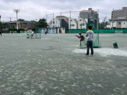 雨があがって野球部の練習が校庭で行われました。顧問の先生のノックのあとはシートバッティングを行いました。