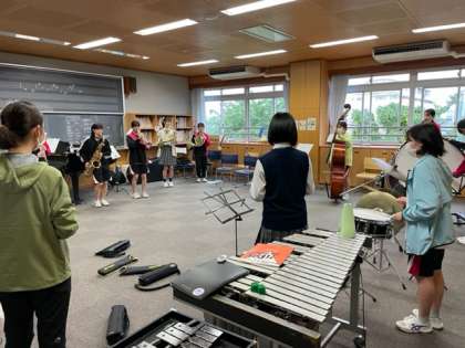 運動会では入場行進曲やファンファーレをになう吹奏楽部。今日は部活動リレーの曲を練習しました。