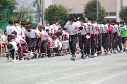 2年生の学年種目は大むかでです。どのクラスも上手になりました、今日転倒してしまったクラスは本番までに修正しましょう。
